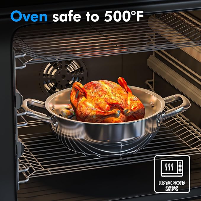 - [Universal Compatibility: All Stovetops, Oven & Dishwasher Safe]: This kitchen cookware set is designed for ultimate versatility. It is fully compatible with all stovetops, including Induction, Gas, Electric, Ceramic, and Halogen. Seamlessly transition from stovetop to oven, as the set is Oven Safe up to 500°F. For effortless cleanup, the entire cookware set is 100% Dishwasher Safe.