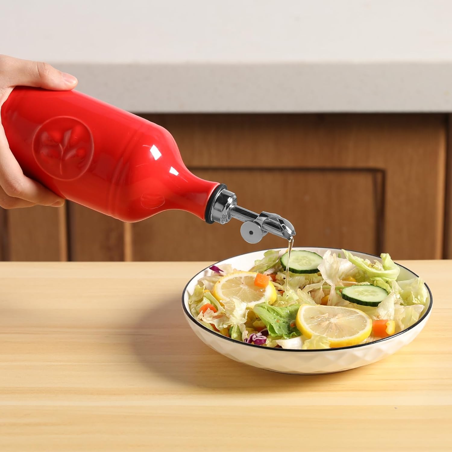 - Gravity-Powered Pouring - Featuring a gravity-activated spout, this olive oil dispenser bottle automatically opens when tilted for pouring and closes seamlessly when placed vertically, which is perfect for quick and controlled drizzling.