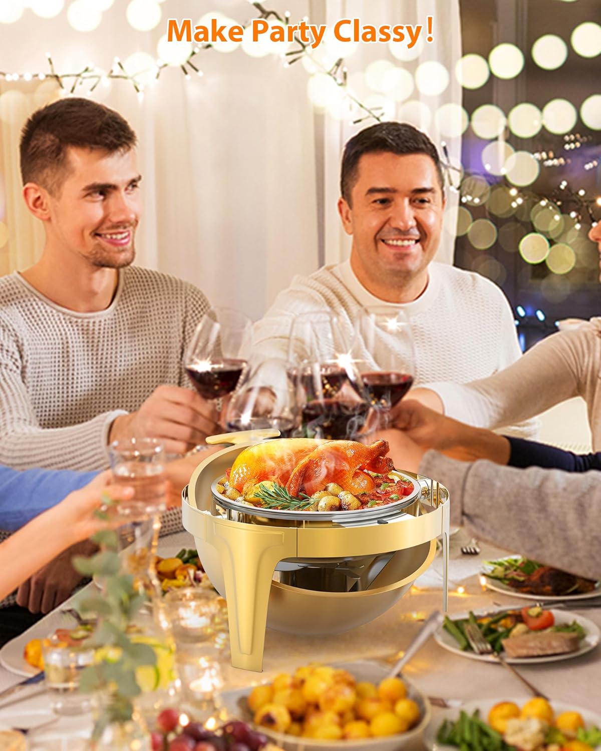 - 【6.3 QT Large Caspacity】 The round chafing dish has a capacity of 6.3 QT, providing you with enough space to store food and meeting the needs of multiple people at the same time. Therefore, you can use it in large-scale party activities to meet your daily needs
