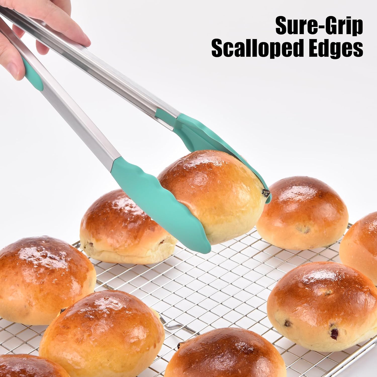 Doosu Kitchen Tongs for Cooking - 600°F Heat Resistant Food Tong with Non-Scratch Silicone Tips, Heavy Duty Stainless Steel Locking Tong for BBQ, Grilling Steak, Serving Salad, Pasta (12in, Aqua Sky)