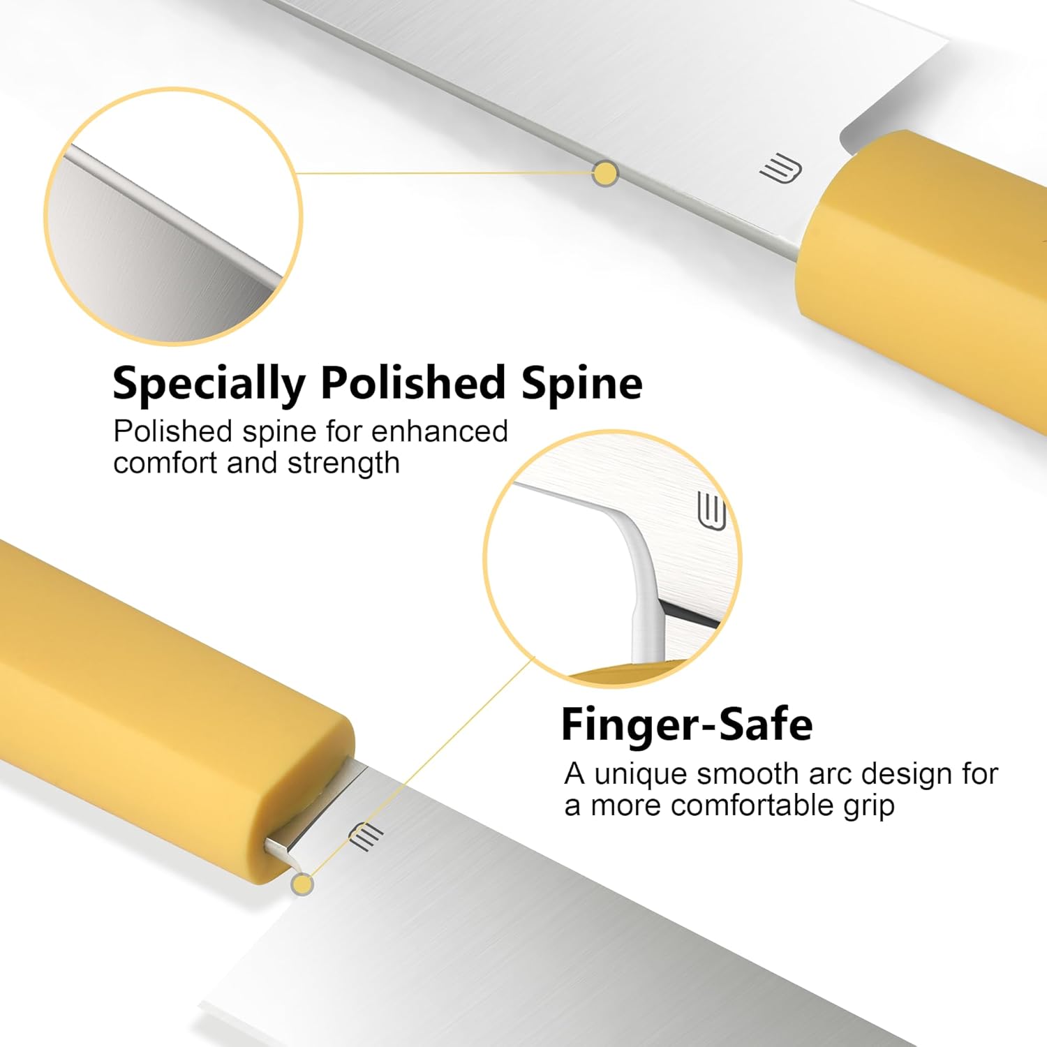 - 【Tested Pure Sharpness】- Our kitchen knives feature a 23° cutting bevel, and each knife is carefully sharpened to allow you to easily chop, slice and mince, whether it is meat, fish or vegetables. It can remain sharp after 1,200 cuts, saving you time and energy in making delicious food