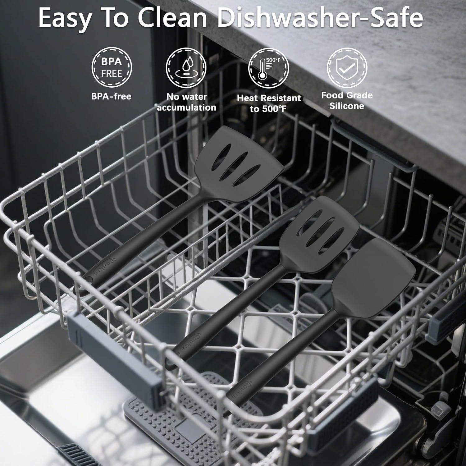 - [Easy to Clean & Dishwasher Safe]: The non-stick silicone surface makes cleanup a breeze, and all utensils are dishwasher-safe for added convenience. With top hanging holes and the included storage holder, organizing and storing your utensils is easier than ever