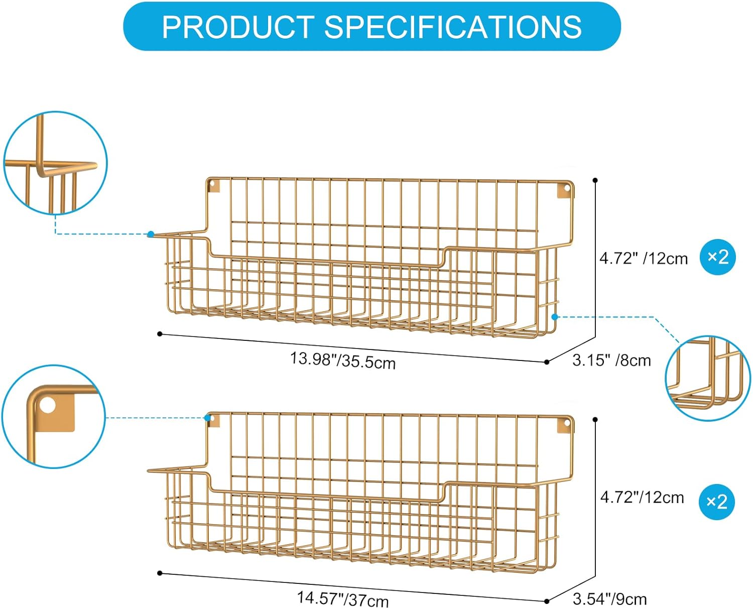 Spice Rack, 4-Pack Seasoning Organizer Wall Mounted for Kitchen Storage Organization, Metal Spice Holder Shelf for Cabinet, Pantry, Gold