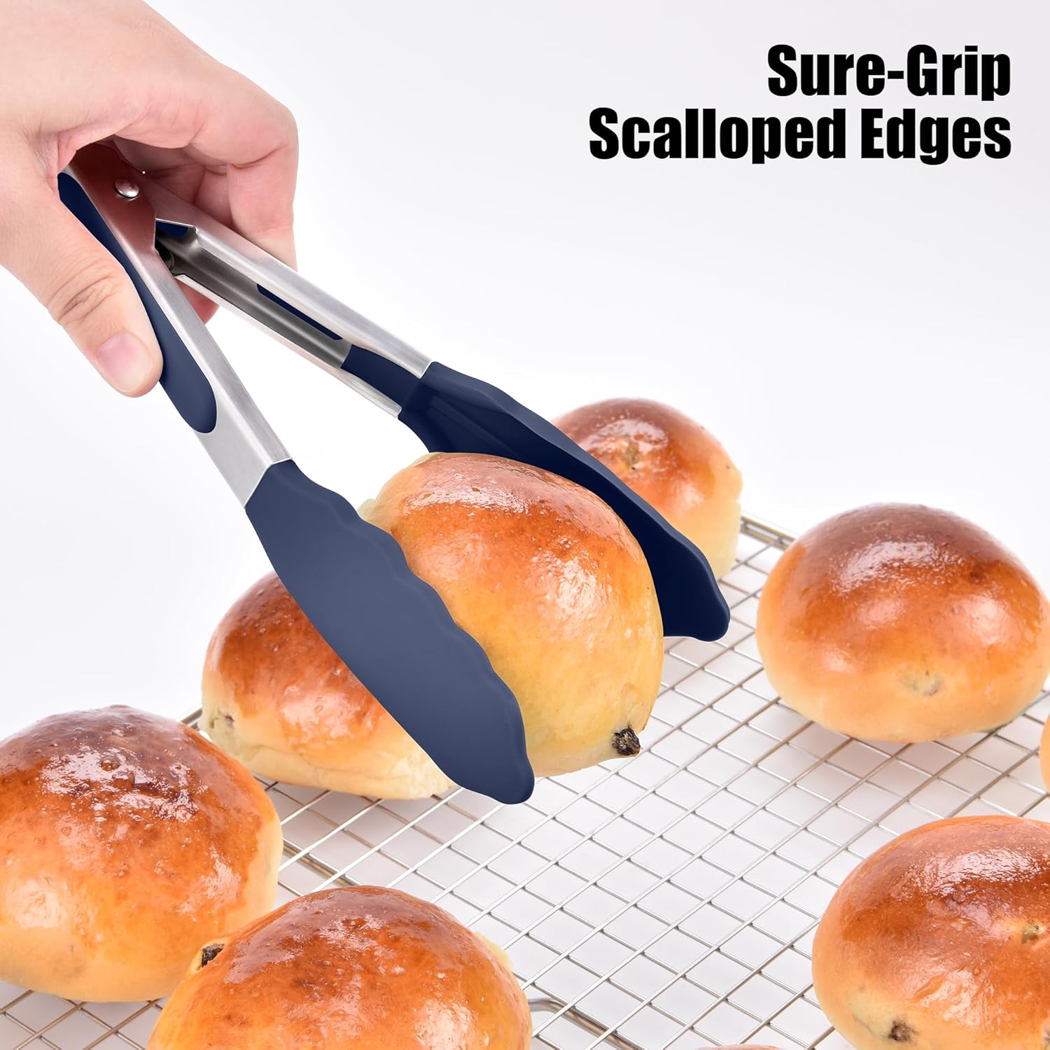 - Non-Slip Grip with Scalloped Edges: The ergonomic design of the handle provides a comfortable and non-slip grip, even when wet. The scalloped edges are specially designed to increase grip strength, allowing you to easily handle slippery, delicate, or hot foods like pasta, chicken wings, or fried eggs.