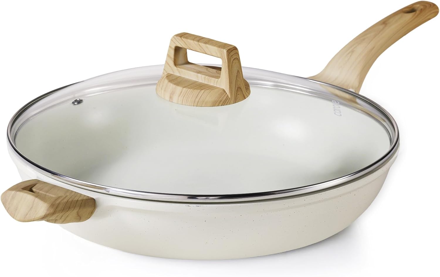 CAROTE 12.5 Inch Non Stick Frying Pan with Lid,White Granite Nonstick Skillet Omelet Pans, Egg Pan Granite Cookware, PFOS & PFOA Free