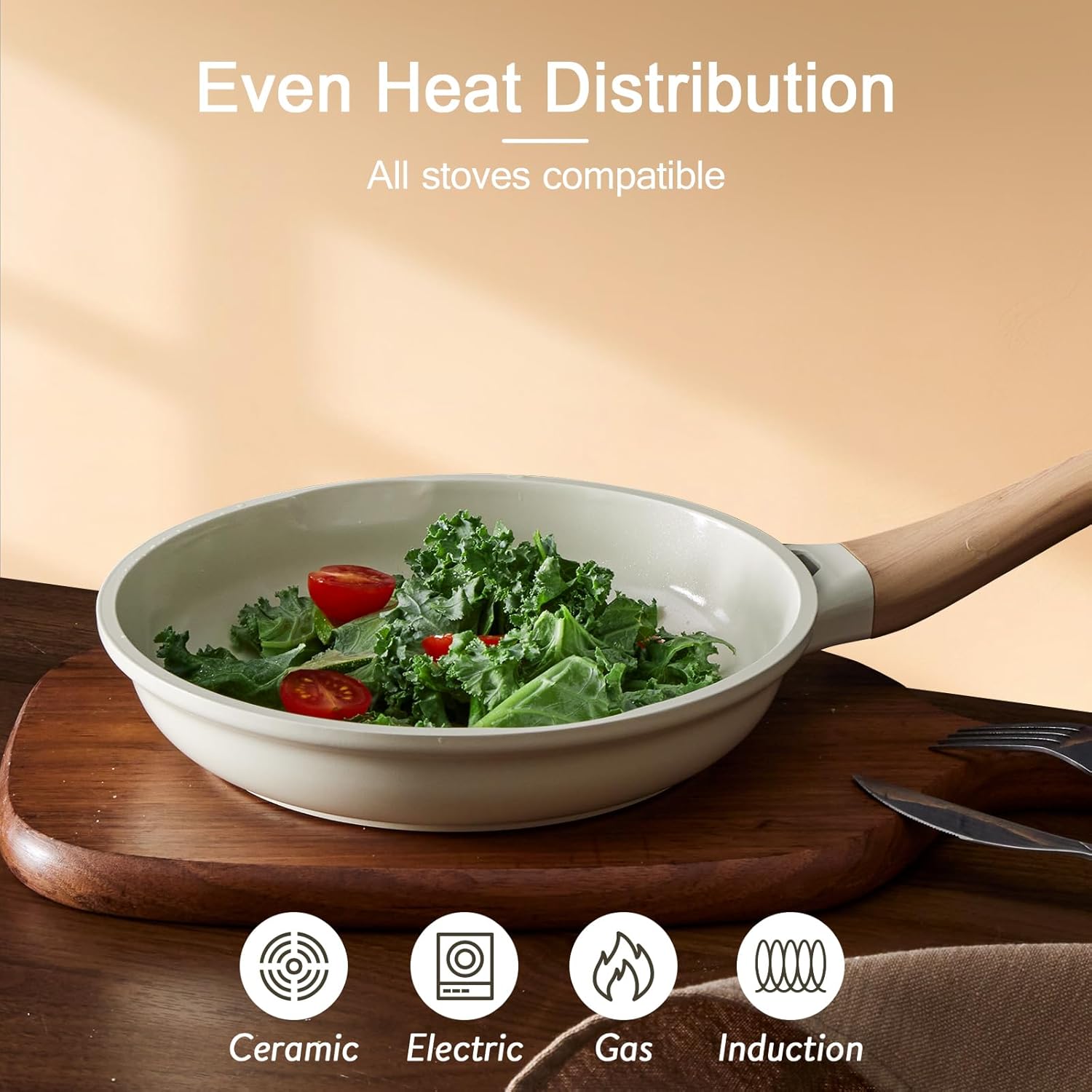 - 【Effortless Cleaning – No Sticking, No Scrubbing】Our ceramic cookware cleans up in seconds—simply rinse or wipe with a sponge. Hand wash is recommended to maintain coating longevity