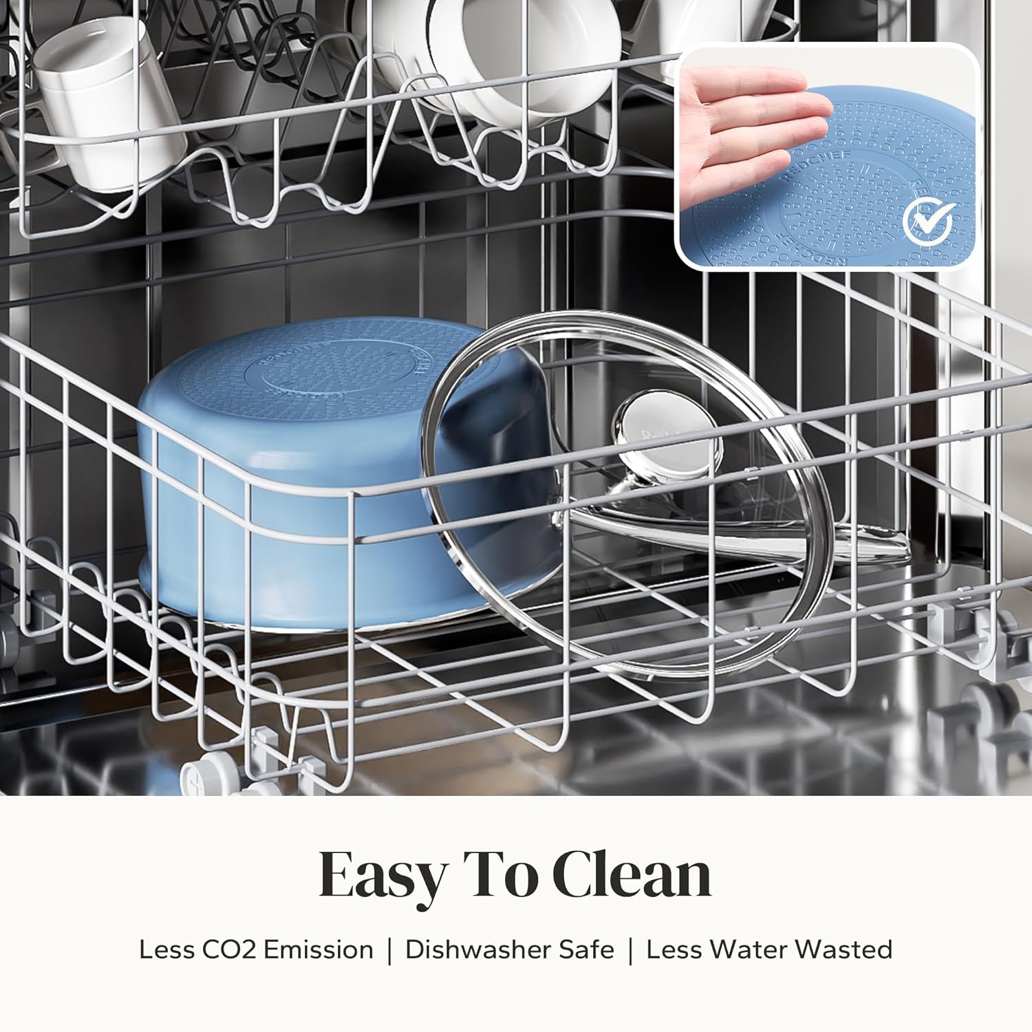 Redchef Nonstick Ceramic Sauce Pan With Lid, 3.5QT Small Cooking Pot with Stay-Cool Handle, Kitchen Non Toxic Soup Pot, PTFE & PFOA Free, Oven & Dishwasher Safe, Compatible with All Stovetops-Blue