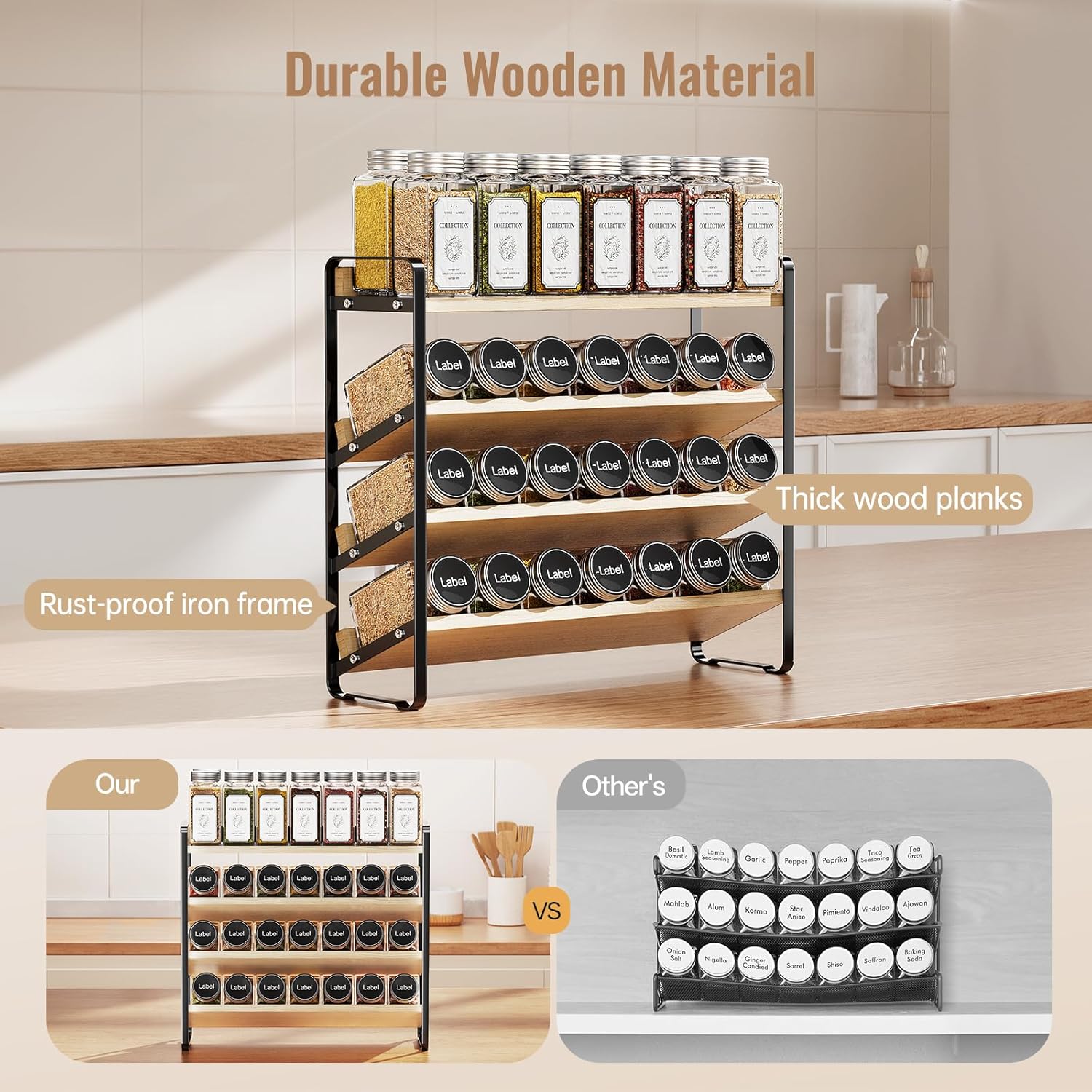- Your Spices, Instantly Found: No more guessing games or pulling everything out. Three slanted shelves tilt your jars so every single label is staring right at you. The flat top shelf braces your tall oils and those big, awkward sauce bottles. Finally, find any spice in seconds