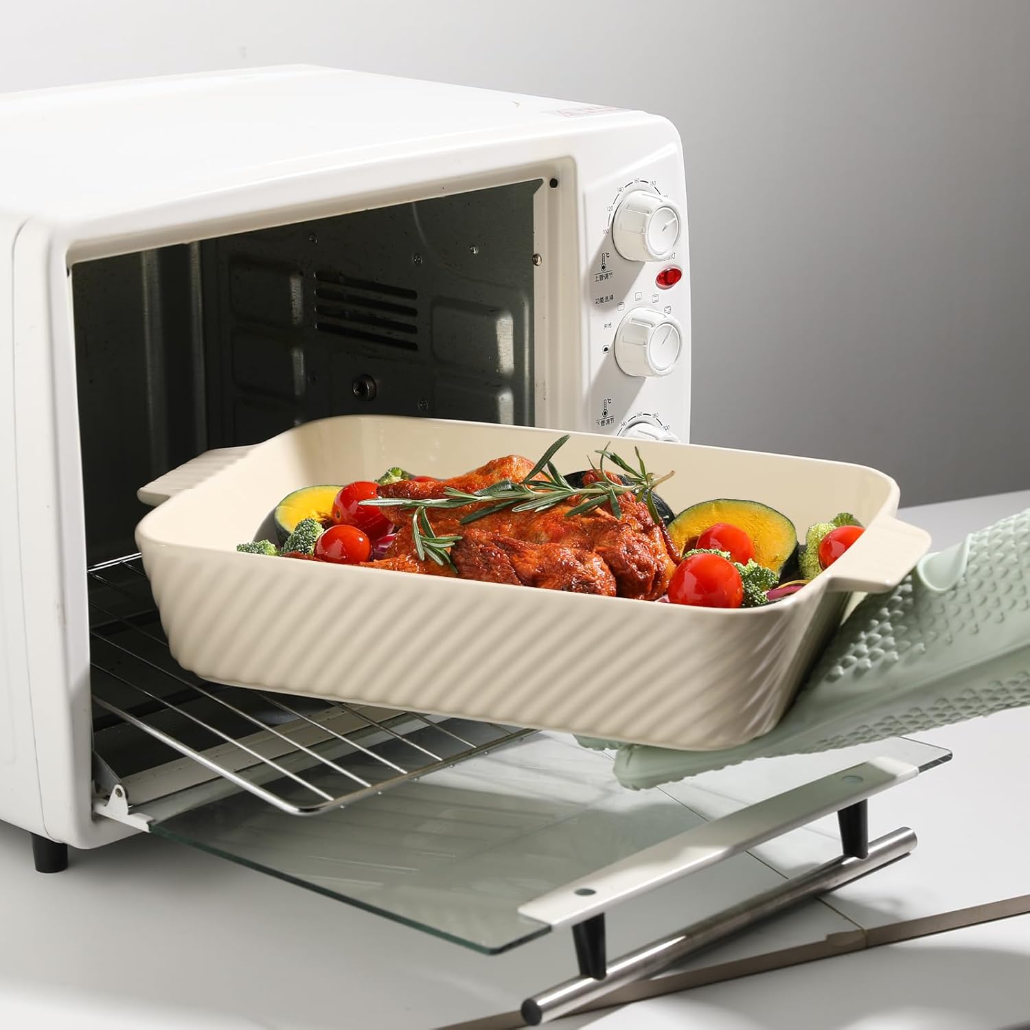 - Ethical & Effortless - Bake with uncompromised peace of mind. Our ceramic baking dishes for oven is naturally non-toxic and free from lead, and synthetic coatings—pure ingredients meet pure materials. Oven-to-dishwasher safe, it cleans up effortlessly without soaking or scrubbing. The stain-resistant glaze repels tomato sauces and spice stains, while the chip-resistant edges survive busy kitchens. Eco-friendly durability meets everyday convenience.