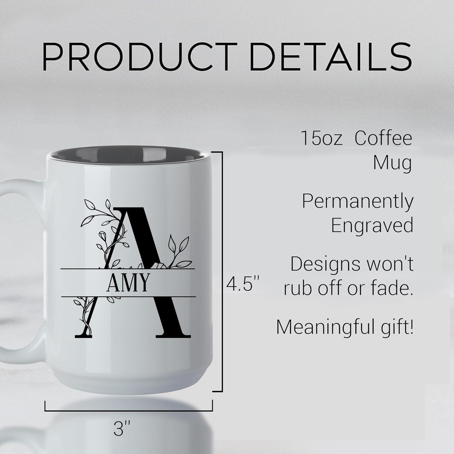 Personalized Coffee Mug - 15oz Engraved Mug with Custom Text & Name, Initials Monogram Tea Cup Gifts for Men & Women, Birthdays, Mother's Day, Anniversary, Customized Coffee Cup, Tazas Personalizadas
