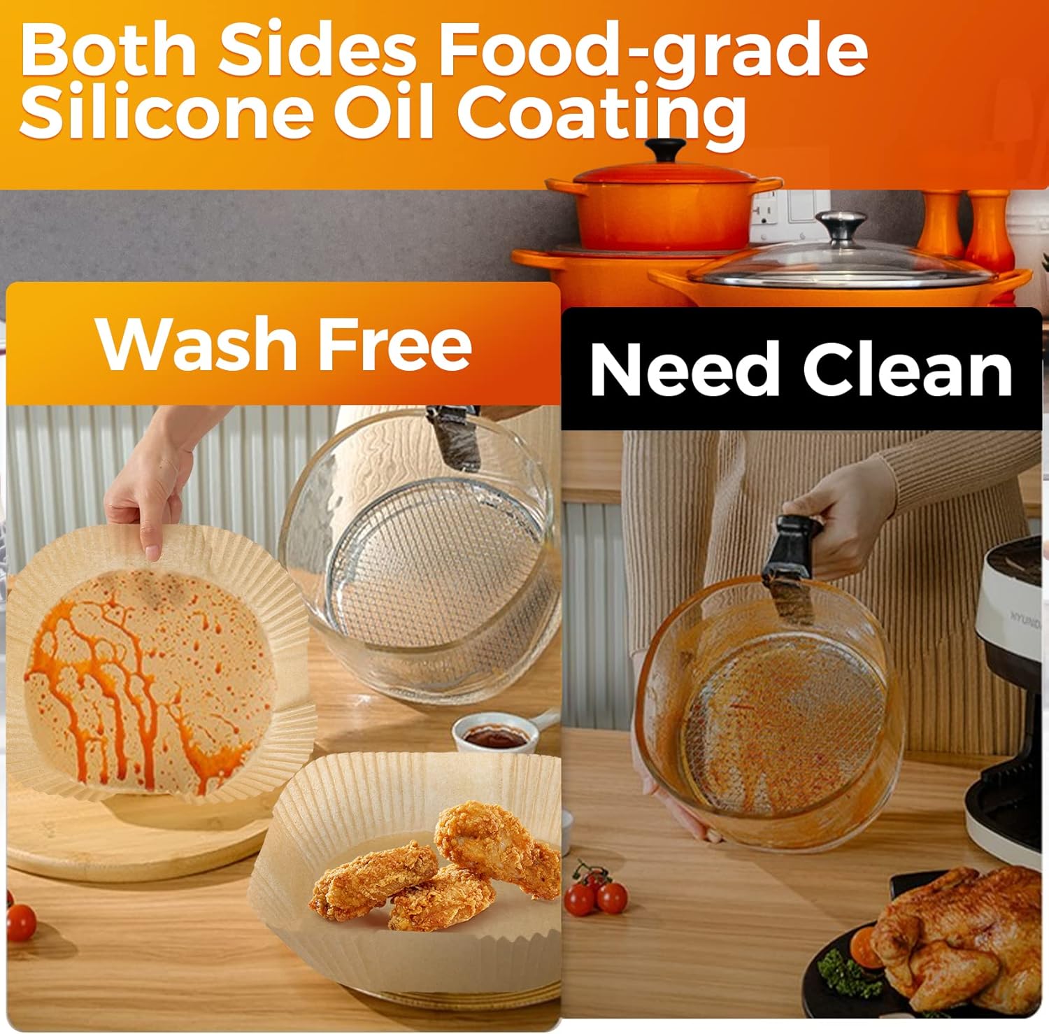 - Easy to Cleanup: Our air fryer parchment liners feature a non-stick, grease-resistant coating, can protects the air fryer inner surface from food mess and sticking, prevents the oils from seeping through, making your baking and cleaning easier than ever.