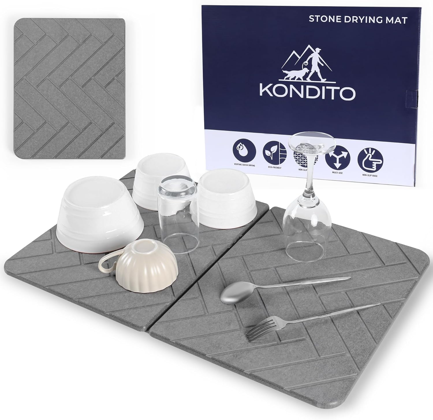 - [SPACE-SAVING FOLDABLE DESIGN] This large stone dish drying mat for kitchen counter folds completely flat for easy storage in any drawer or cabinet, freeing up precious counter space when not in use.