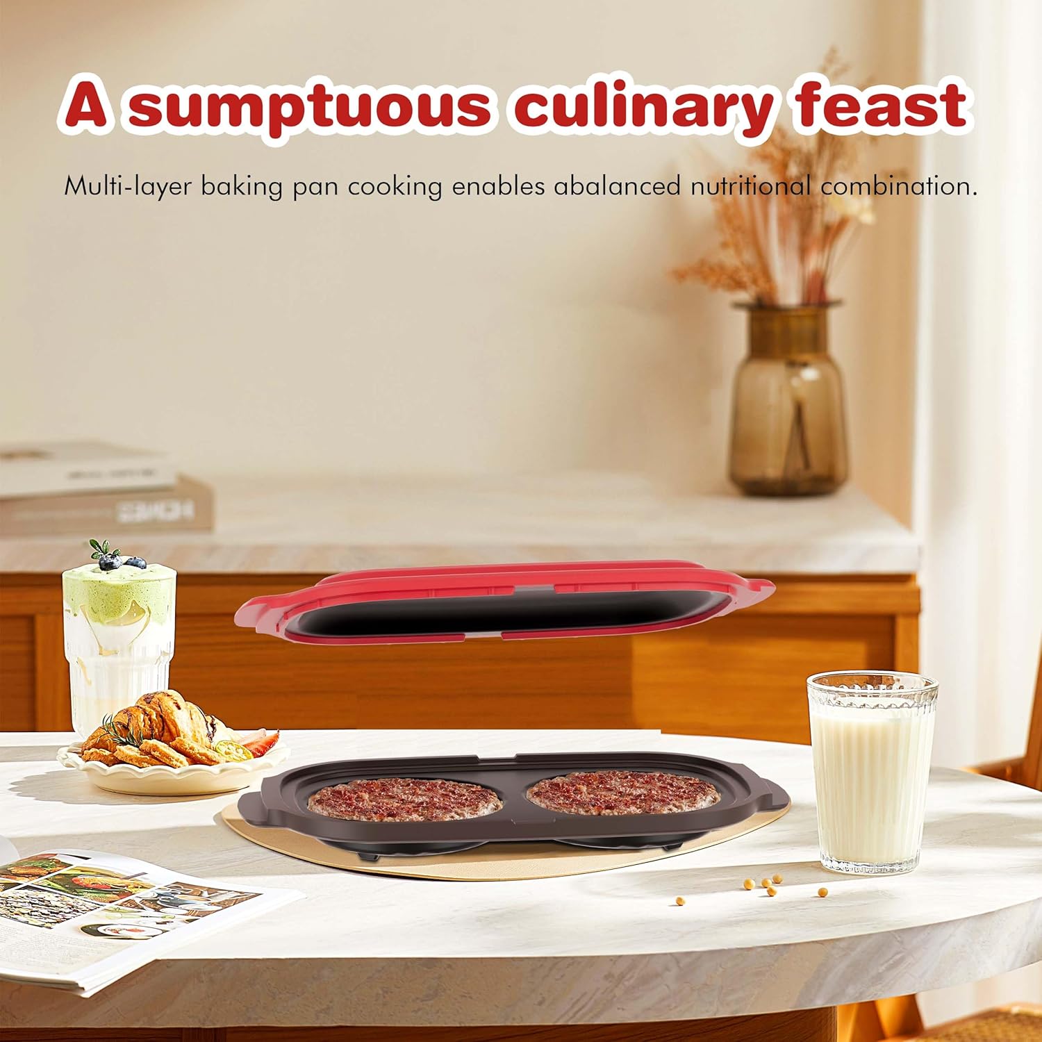 - 【Rapid & Efficient Cooking】Whether frying, scrambling, poaching eggs, or grilling beef burgers, steak bites, or mini omelets with veggies/cheese, it cuts down cooking time drastically, perfect for busy mornings.Equipped with extra-large dual chambers, it lets you cook simultaneously,Beyond eggs, it handles muffins, meatloaf, and even veggie sides, making it a all-in-one solution for single servings or small meals.