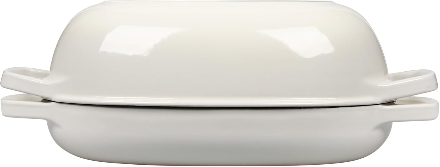 - Excellent Heat Retention: The heavy duty cast iron core with a thick enamel coating ensures superior heat distribution and long-lasting warmth, keeping bread fresh and crusty for longer.