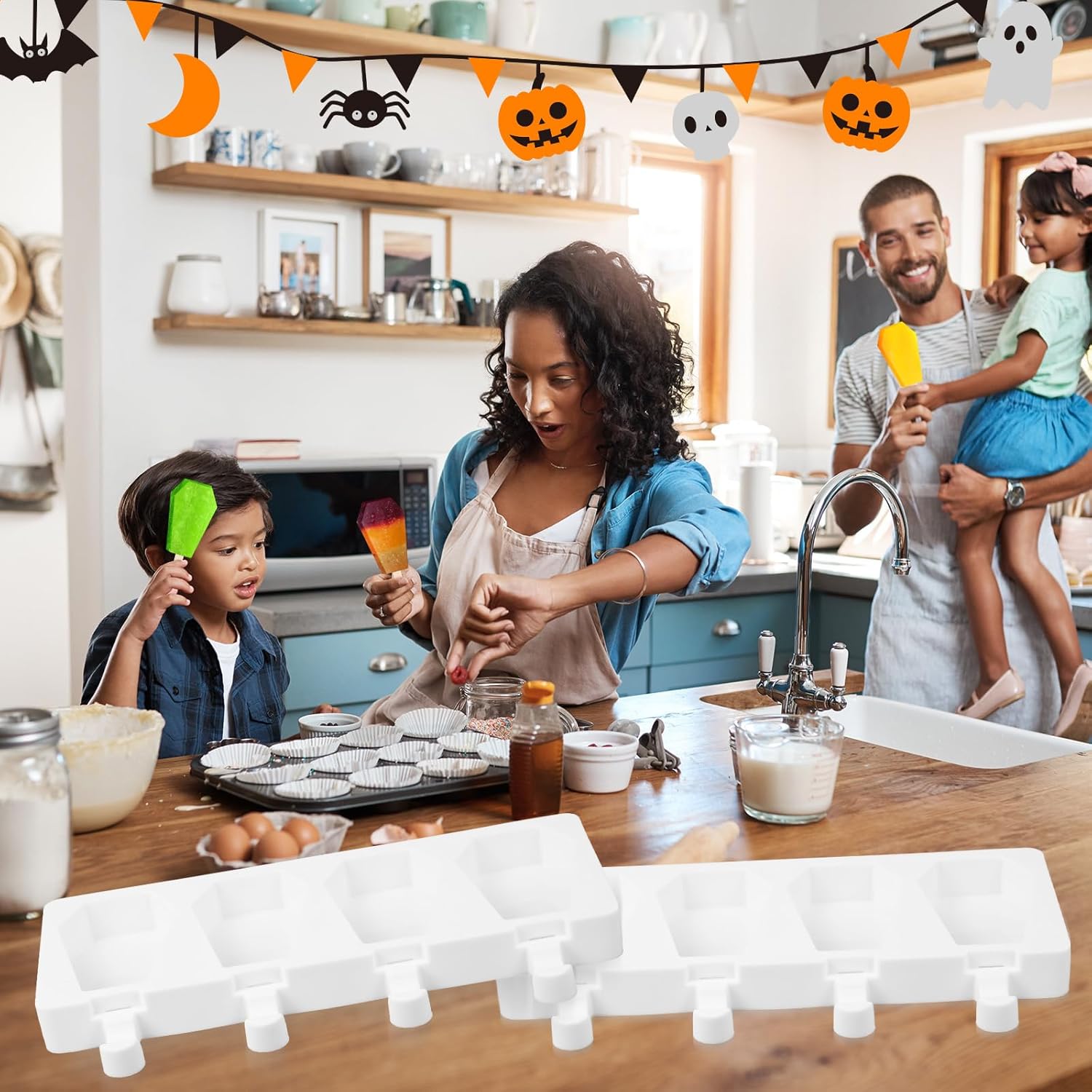 - Compact Size Saves Space: the overall size of the large Halloween silicone ice cream bar mold is 10.24 x 5.51 inches, single cavities size 3.5 x 2.1inchs, which is easier to make lollipop cakes than other mini molds; It fits most refrigerator drawers, is easy to store and does not take up space, and is an ideal choice for home kitchens and DIY dessert lovers