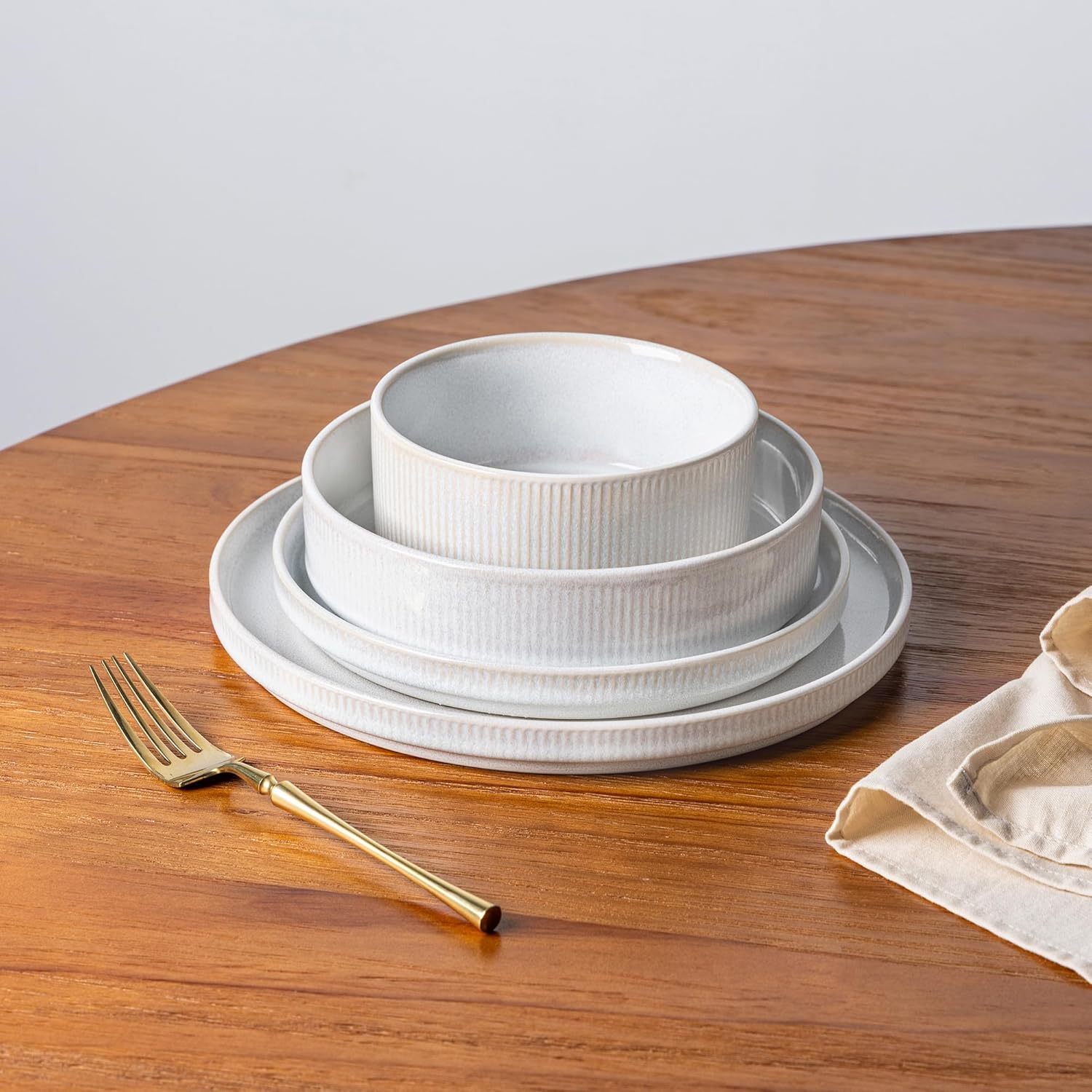 - Healthy, Lead-Free & Chip-Resistant: Crafted from premium, double-fired ceramic, this dinnerware is lead-free and cadmium-free, ensuring no harmful chemicals leach into your food. The durable stoneware construction makes it exceptionally chip-resistant and built for long-lasting daily use.