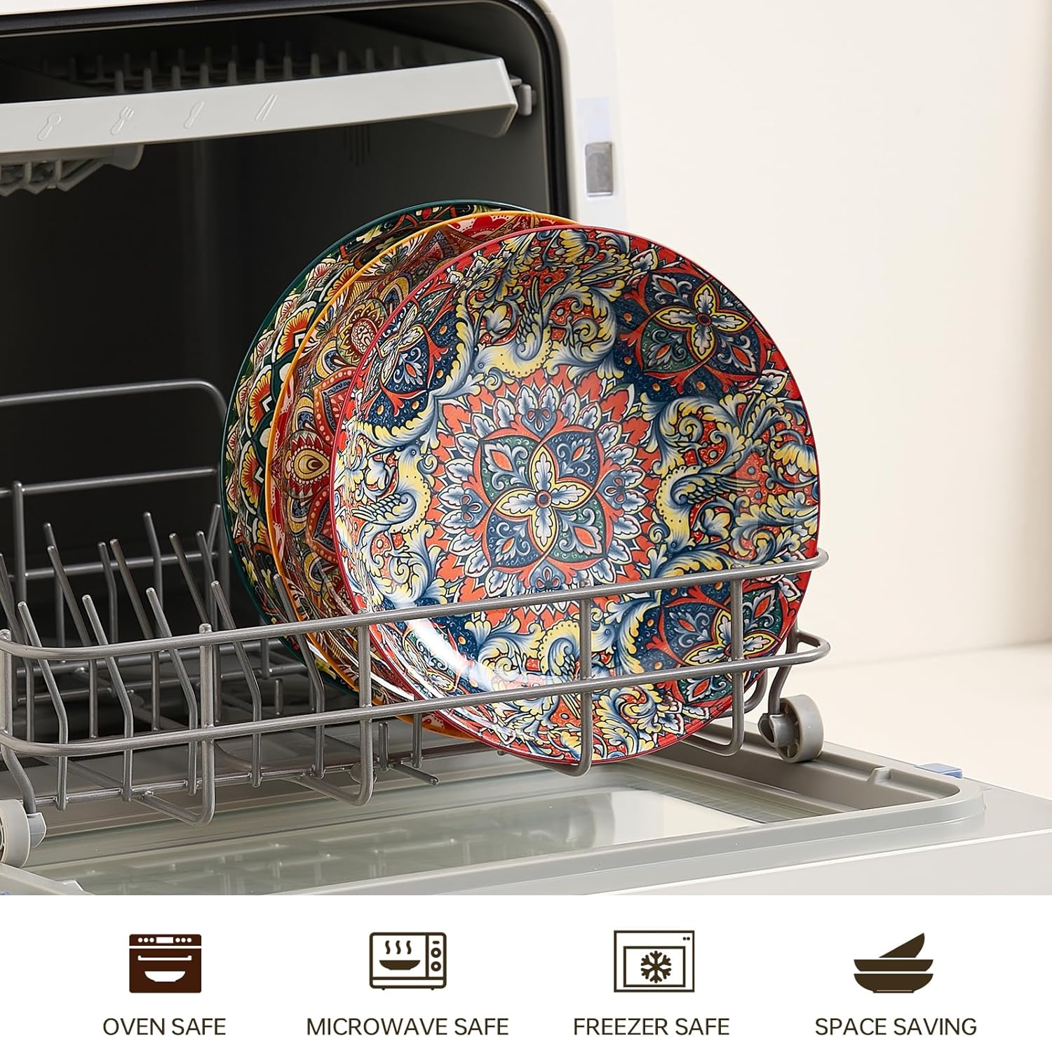 - Vibrant Bohemian design: Each ceramic bowl features a unique handcrafted Bohemian style, with bright colors and exquisite patterns adding an artistic touch and vitality to your dining table, creating a festive atmosphere for every meal and enhancing the dining experience and enhance your dinnerware sets.