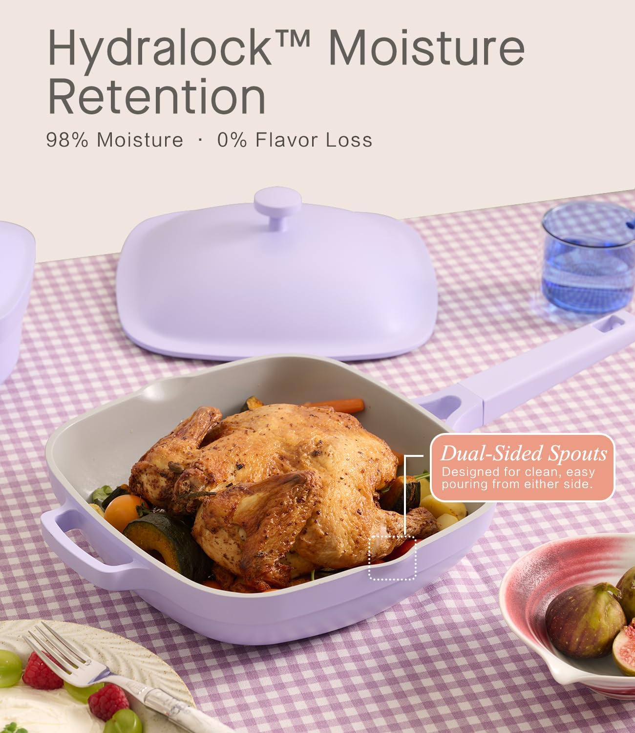 - (Patented)All-in-One Pix Pan: Our Pix square pan offers 45% more cooking surface than standard round pans, more than a frying pan,letting you sear, sauté, braise, stir-fry, and more — all in one versatile piece. Replacing your frying pan, saucepan, wok, braiser, sauté pan, nonstick pan, and even stock pot, it’s perfect for cooking multiple portions without overcrowding. Ideal for families, meal prep, and anyone who loves efficiency in the kitchen.