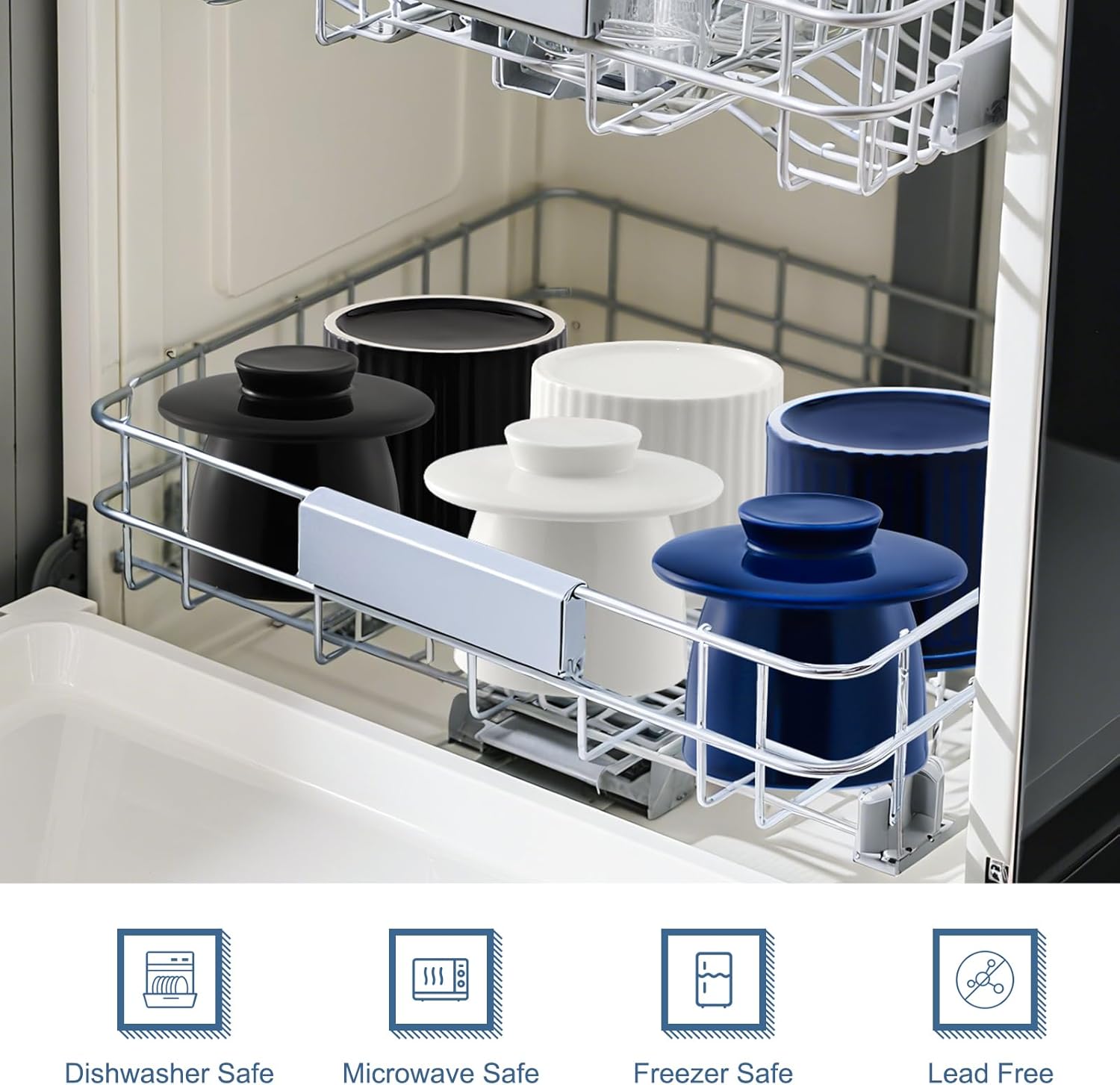 - 🧈ALWAYS SOFT, SPREADABLE BUTTER: Ditch the fridge frustration! Our butter crock keeps butter perfectly soft and spreadable — no more microwaving or awkward scrapin. The airtight water seal preserves freshness for up to 30 days (salted) and 10 days (unsalted). Enjoy velvety butter on toast, pancakes, or baked goods every time