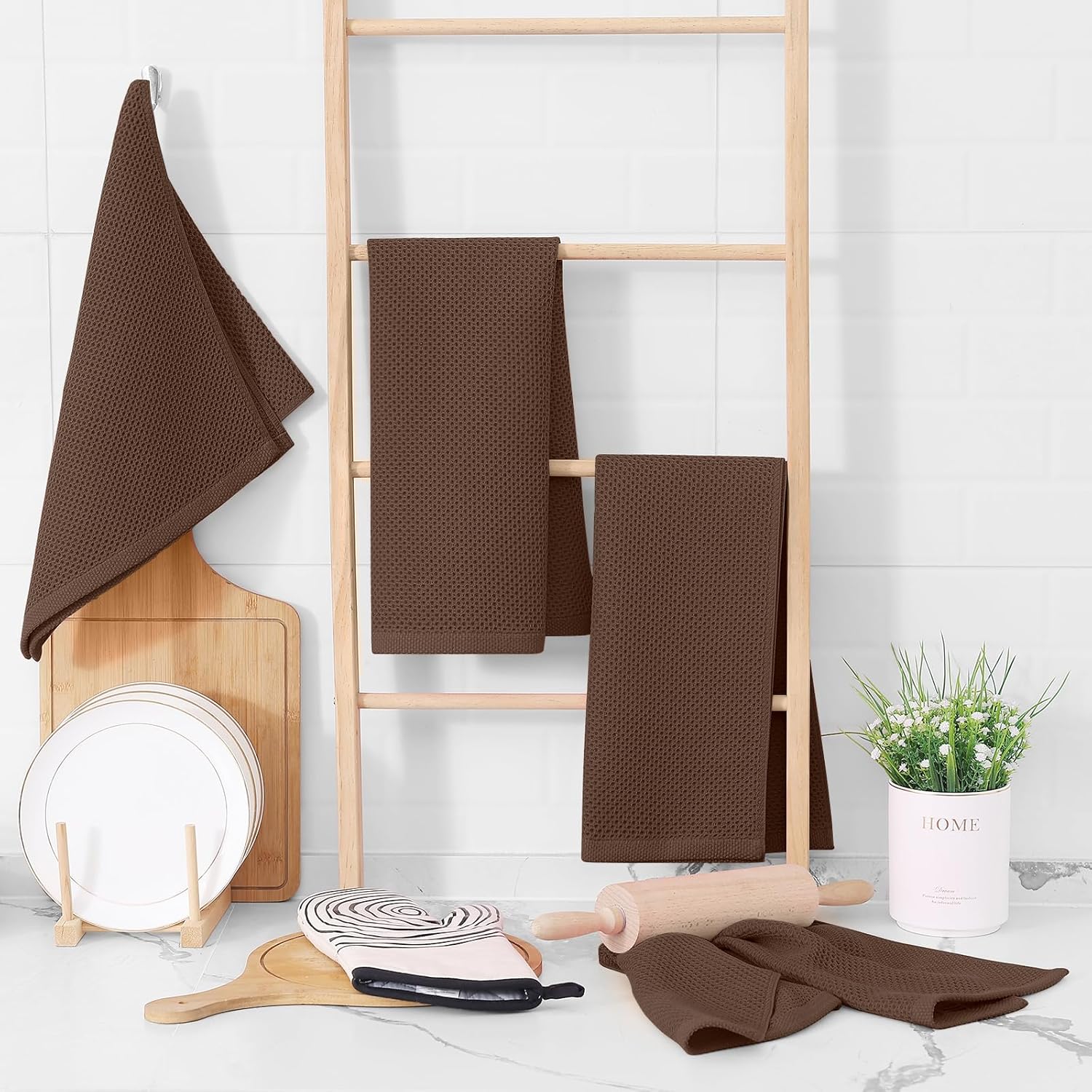 Homaxy 100% Cotton Waffle Weave Kitchen Dish Towels, Ultra Soft Absorbent Quick Drying Cleaning Towel, 13 x 28 Inches, 12-Pack, Coffee