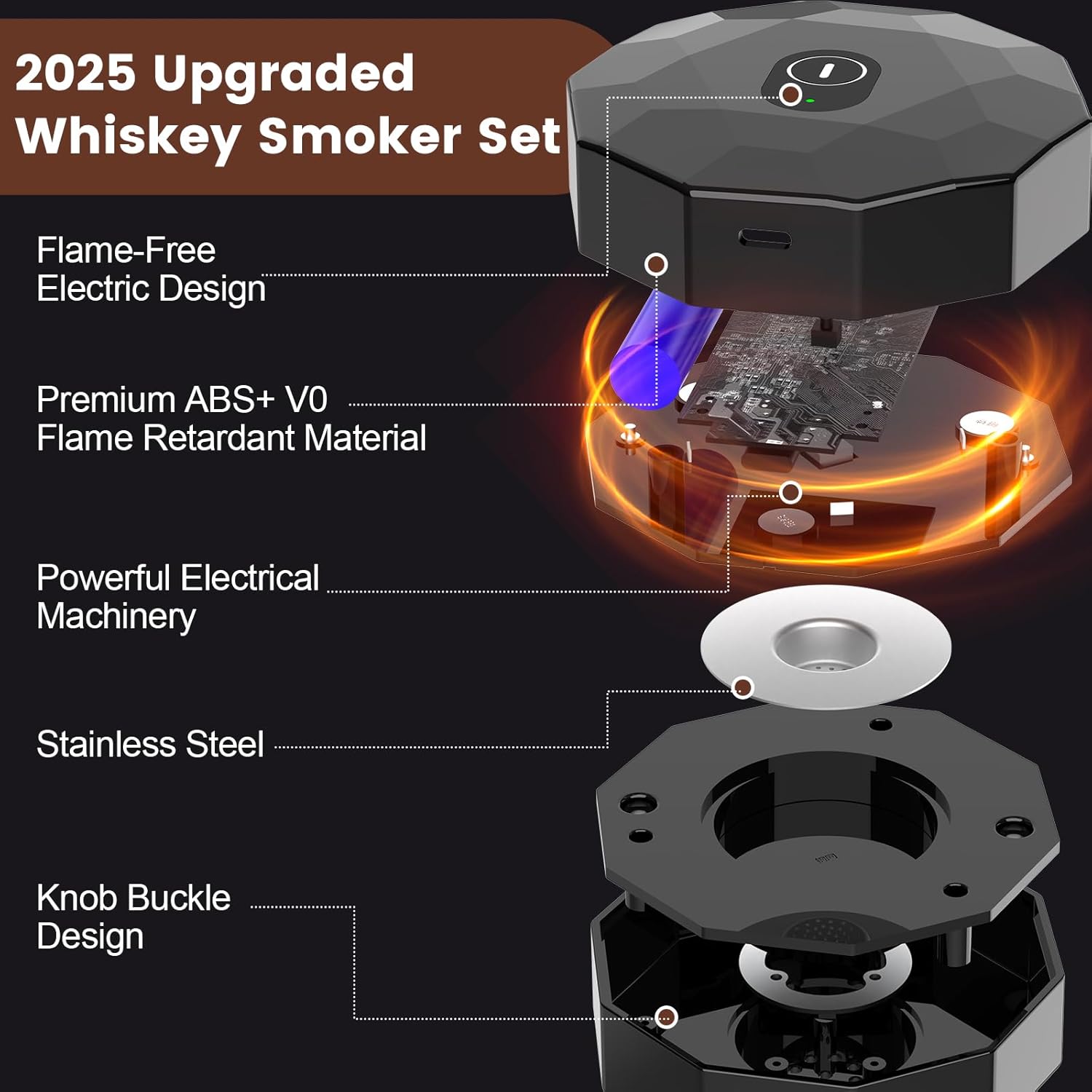- 【Rich Smoky Flavors】Our cocktail smoker kit awakens your senses. It comes with 6 types of wood chips (oak, applewood, pecan, cherry, pear, and beechwood), infusing your whiskey with a rich, smoky flavor.
