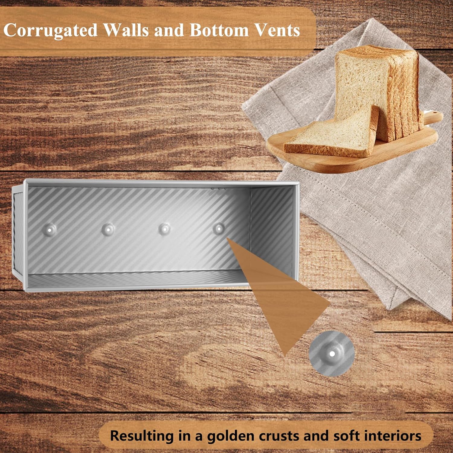 - Bakery-Perfect Steam Control: Snug-fitting lid creates uniform sandwich bread slices. Lid-off baking for rustic artisan loaves. Heat-distributing carbon steel + steam vents optimize crust development in bread loaf pans for baking.