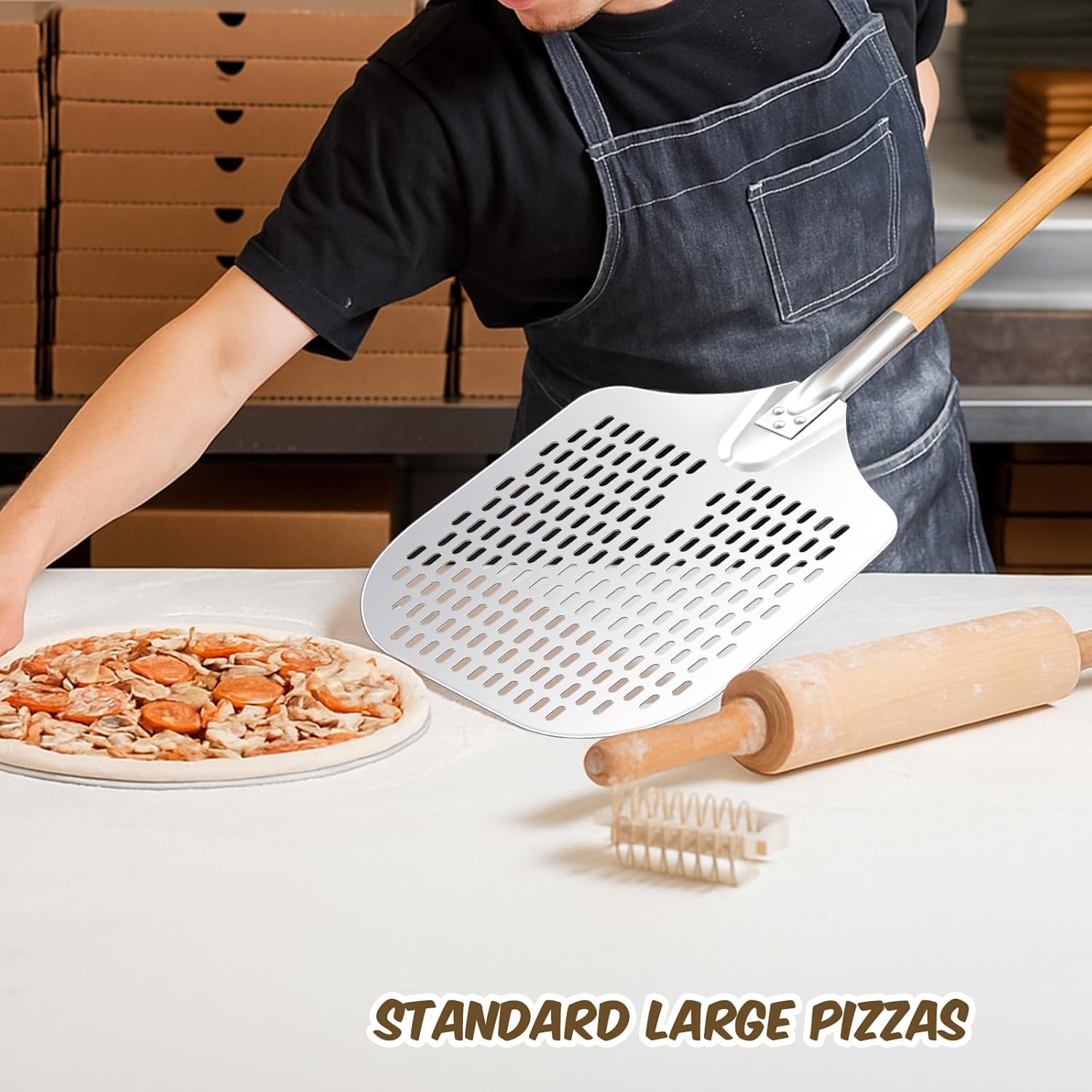 - Package Including : you will receive 2 pizza peels; Each pair of peels comes with an extendable handle and can be assembled according to your specific usage needs; The scraper surface is precision-perforated, automatically removing excess flour and corn flour during the pizza delivery process, effectively avoiding the formation of scorch marks caused by high-temperature baking, ensuring that the crust is evenly crispy