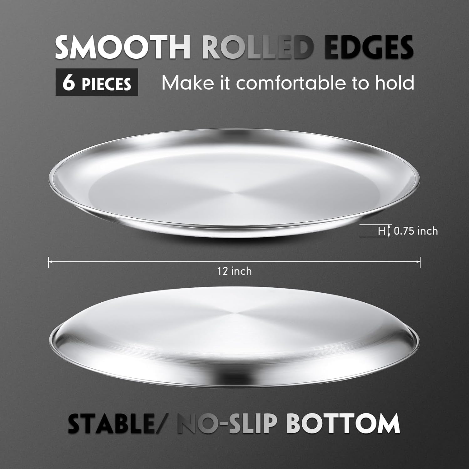 - Detailed Size: camping stainless steel plates measure approx. 30 cm/ 12 inches in diameter, 1.9 cm/ 0.75 inches in height, lightweight and stackable, which are suitable for cookies, pie, corn bread and pizza in oven, and fit for most toaster ovens, easy and convenient to place or store with saving space