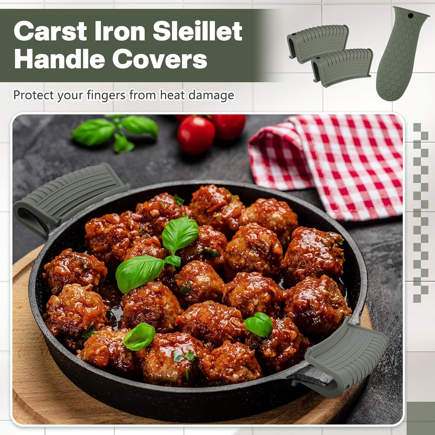 - Anti-slip Design: these hot resistant pot sleeve grip handle holders feature honeycomb pattern design on the outside and concave-convex design on the inside to make the handle holder grip stronger and less slippery; The silicone hot skillet handle cover has a handy hanging hole if you prefer to store on a hook, making cooking, baking, etc. in your kitchen easier and fun
