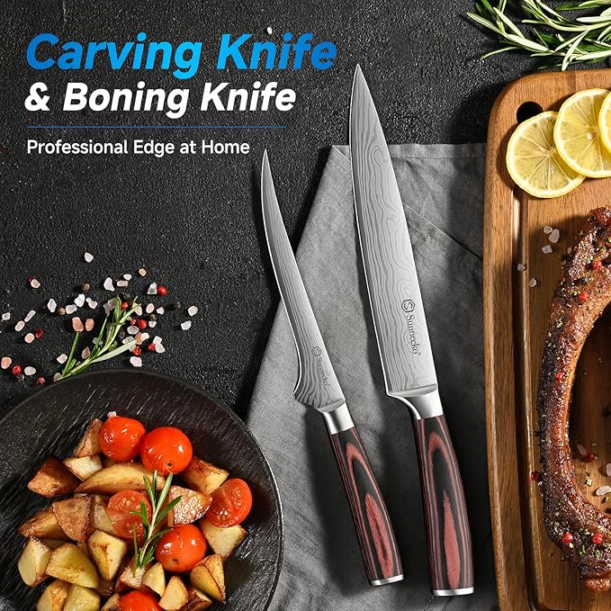 - Enduring Sharpness, Effortless Cutting: Razor sharp knives set for kitchen glide effortlessly through meat, fish, vegetables and bread, delivering precise cuts with ease. Precision-honed kitchen knife sets ensure long-lasting sharpness, reducing the need for frequent sharpening.