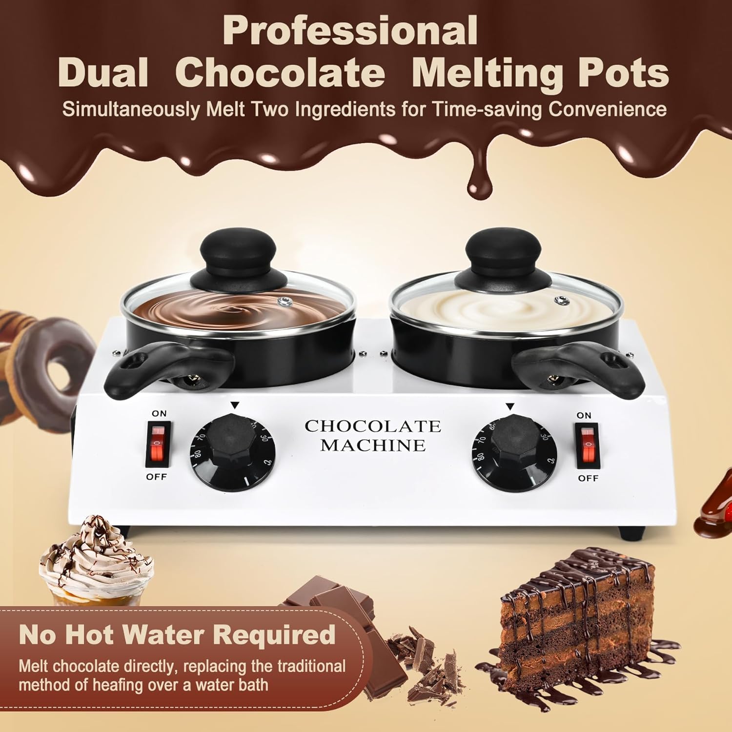 Electric Chocolate Melting Machine, Chocolate Warmers(2x1L Ceramic-Coated Pots, Chocolate Dipping Fork Spoons Set) Fast and Even Melting | PTC Heating| Temp Control, Ideal for Chocolate, Candy, Butter