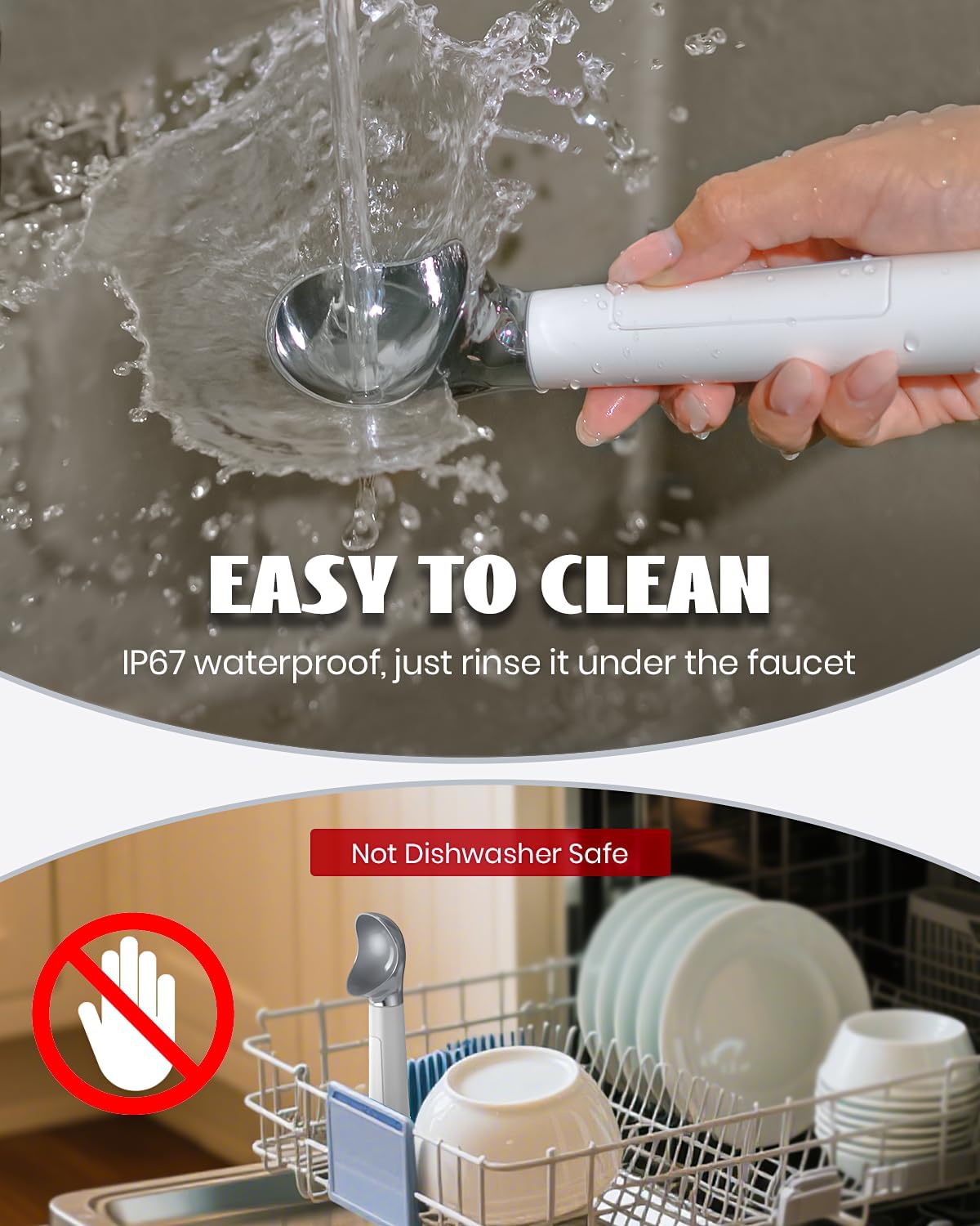 Heated Ice Cream Scoop, Electric heated ice cream scoop that heats up to 158°F for hard ice cream, Easy to use with LED display, IP67 Waterproof Ice Cream Scoop,Easy to clean
