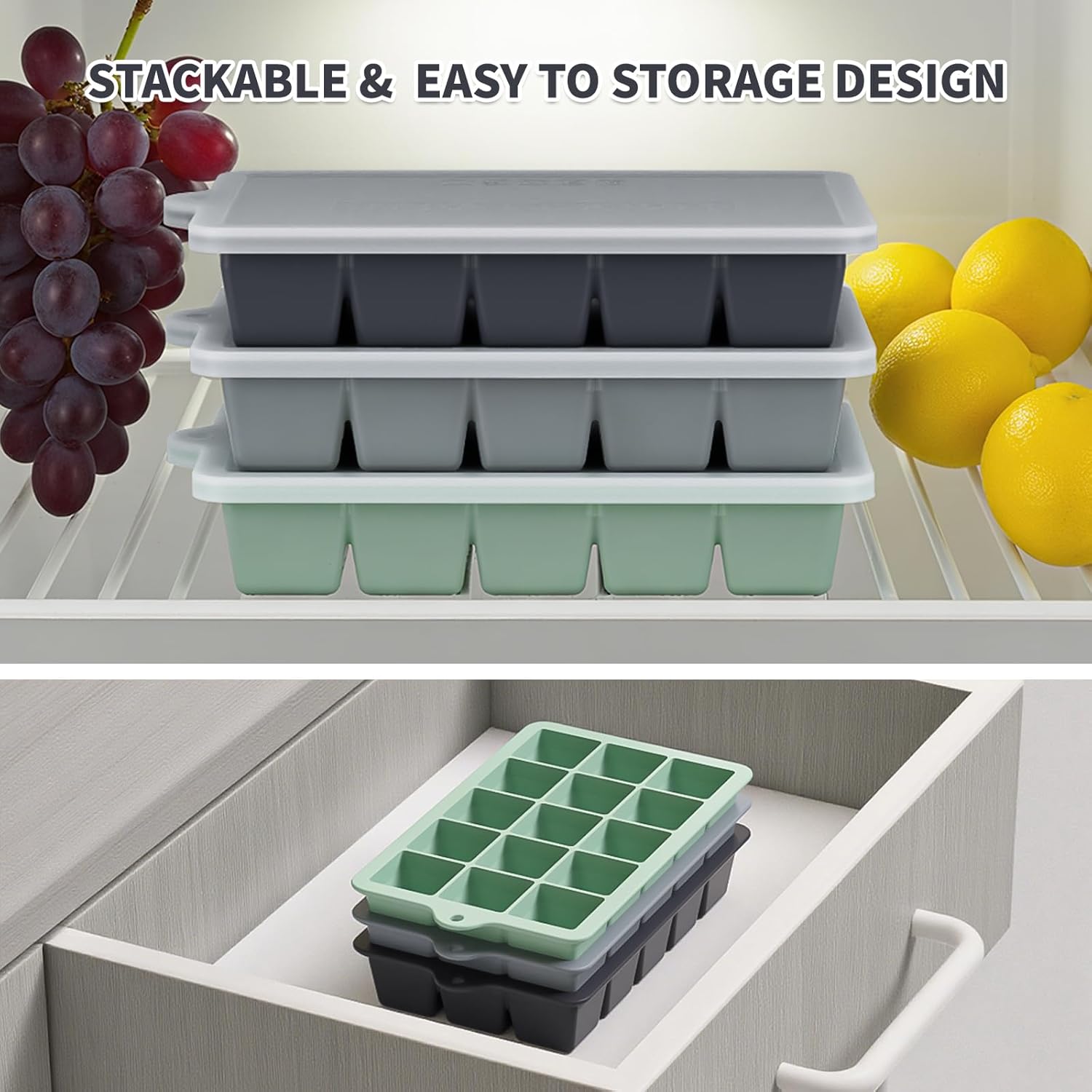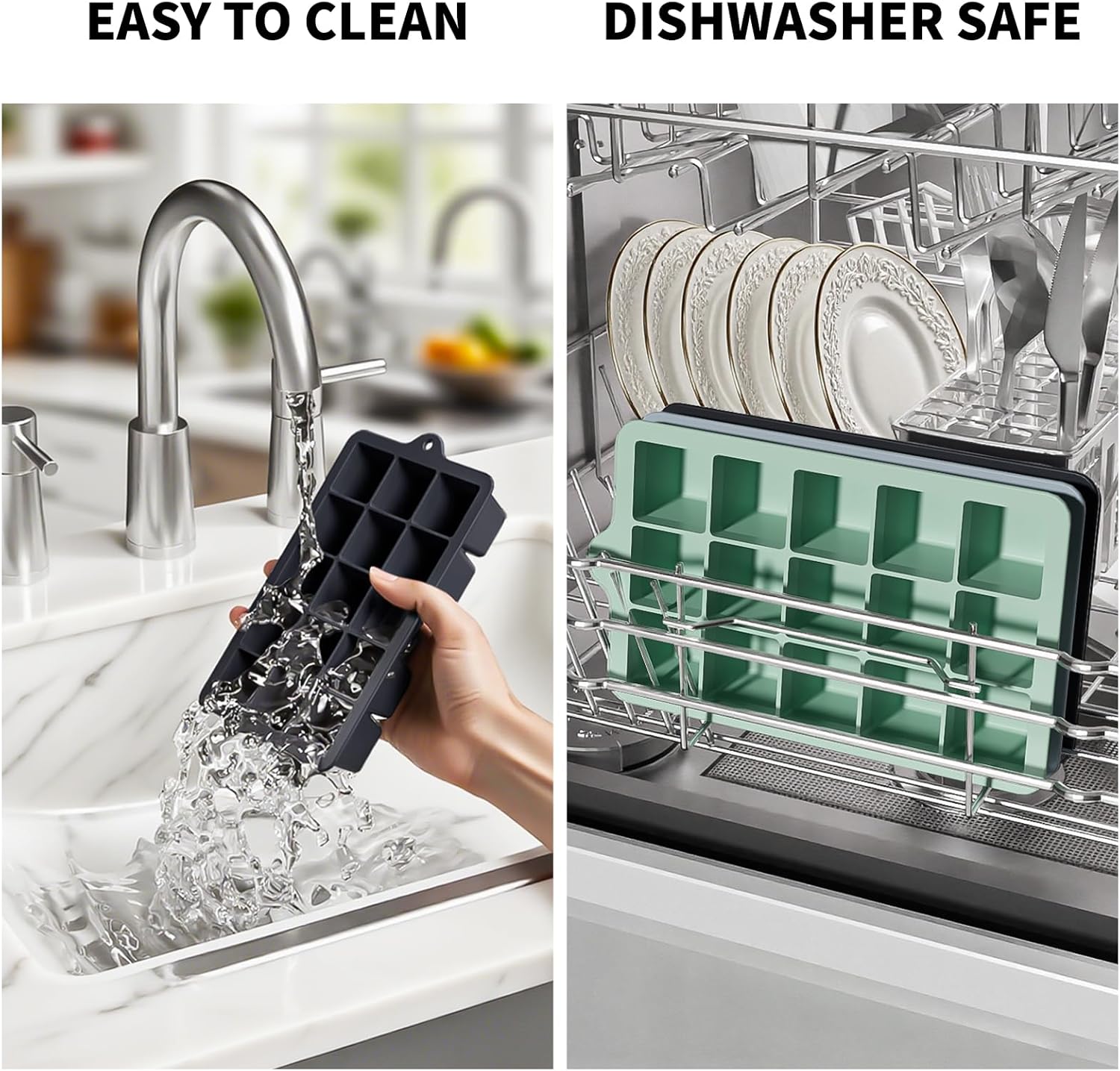 - Food Grade Silicone Ice Cube Tray: Our silicone ice cube trays are made of food grade silicone which is BPA free durable safety and odorless, they can directly contact food, for drink & food making and can be used for dishwasher, refrigerator, freezer and microwave