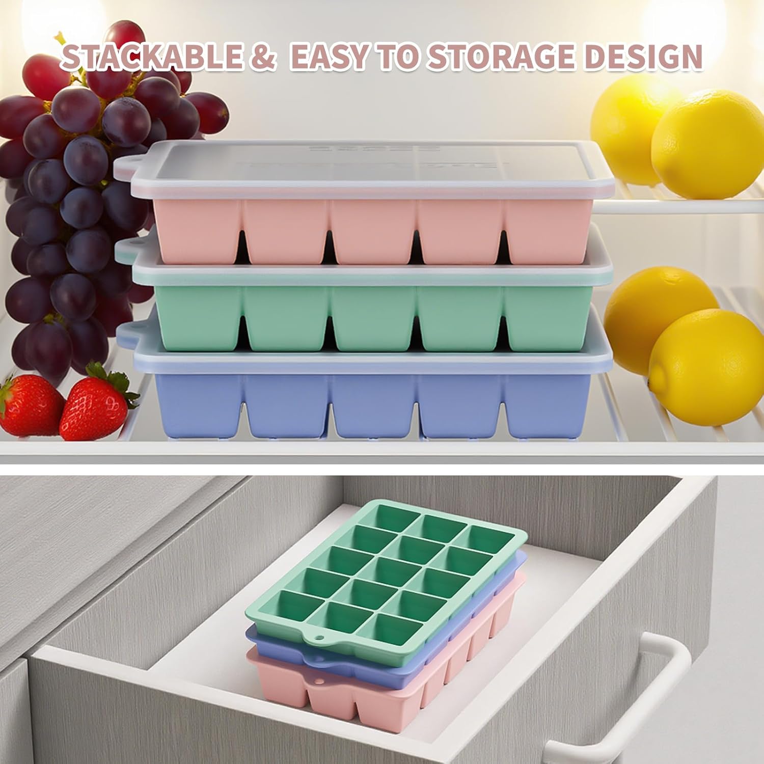 Silicone Ice Cube Tray 3 Pack, HANCELANT Ice Cube Mold, Ice Trays for Freezer with Lid for Whiskey, Baby Food, BPA Free, Easy Release