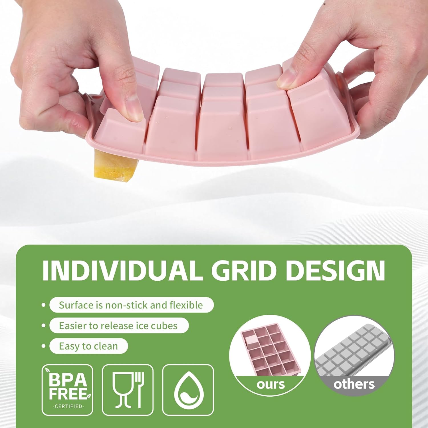 - 【Flexible & Easy-Release Ice Trays 】Our upgraded ice tray with lid features a sleek, non-stick surface for easy release. Just squeeze or push, and ice cubes pop out smoothly.Ice cube trays for freezer with lid are ideal for cocktails, smoothies, or everyday drinks, making your ice-making quick and frustration-free.