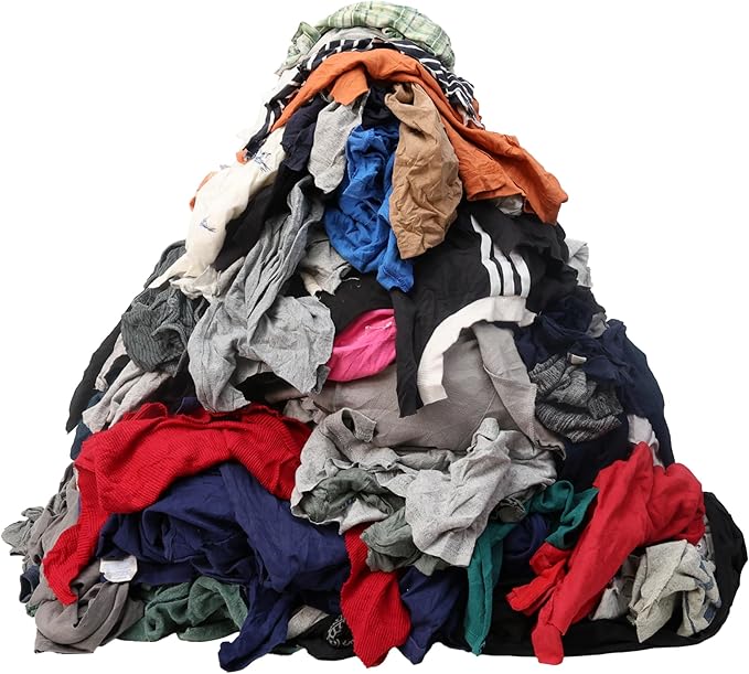 Huck & Terry Tshirt Bag of Rags Multicolored (1,000 LBS, 20x Bales), Cotton Blend, Paint Rags and Multipurpose, Kitchen, Auto, Staining Wiper, Shop Cloths Bulk, Lint Free Absorbent Washable, 20 Bags