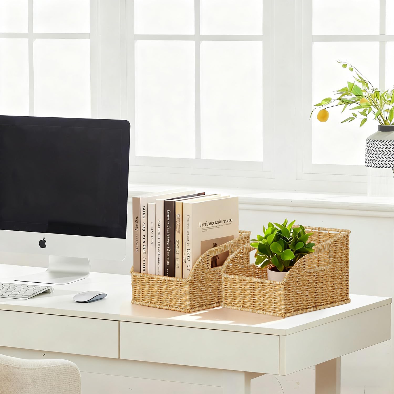 - Handwoven kitchen baskets for storage feature 2 handles for secure and easy carry.Smart options for extra storage in a living area, kitchen or bath.