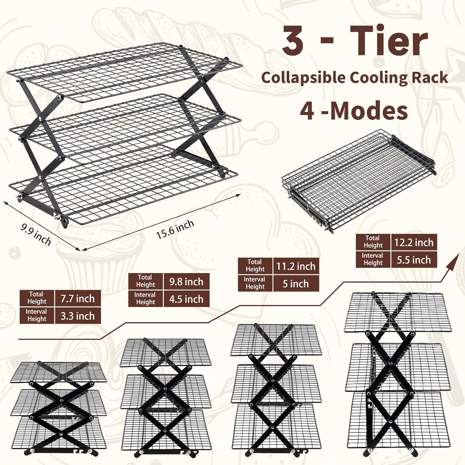 Pleafind 3 Tier Collapsible Cooling Rack - 3 Setting Design, Adjustable & Stackable Baking Rack, 5 Modes Cooling Racks for Cooking and Baking, Roasting & Grilling Gifts for Picnic Party
