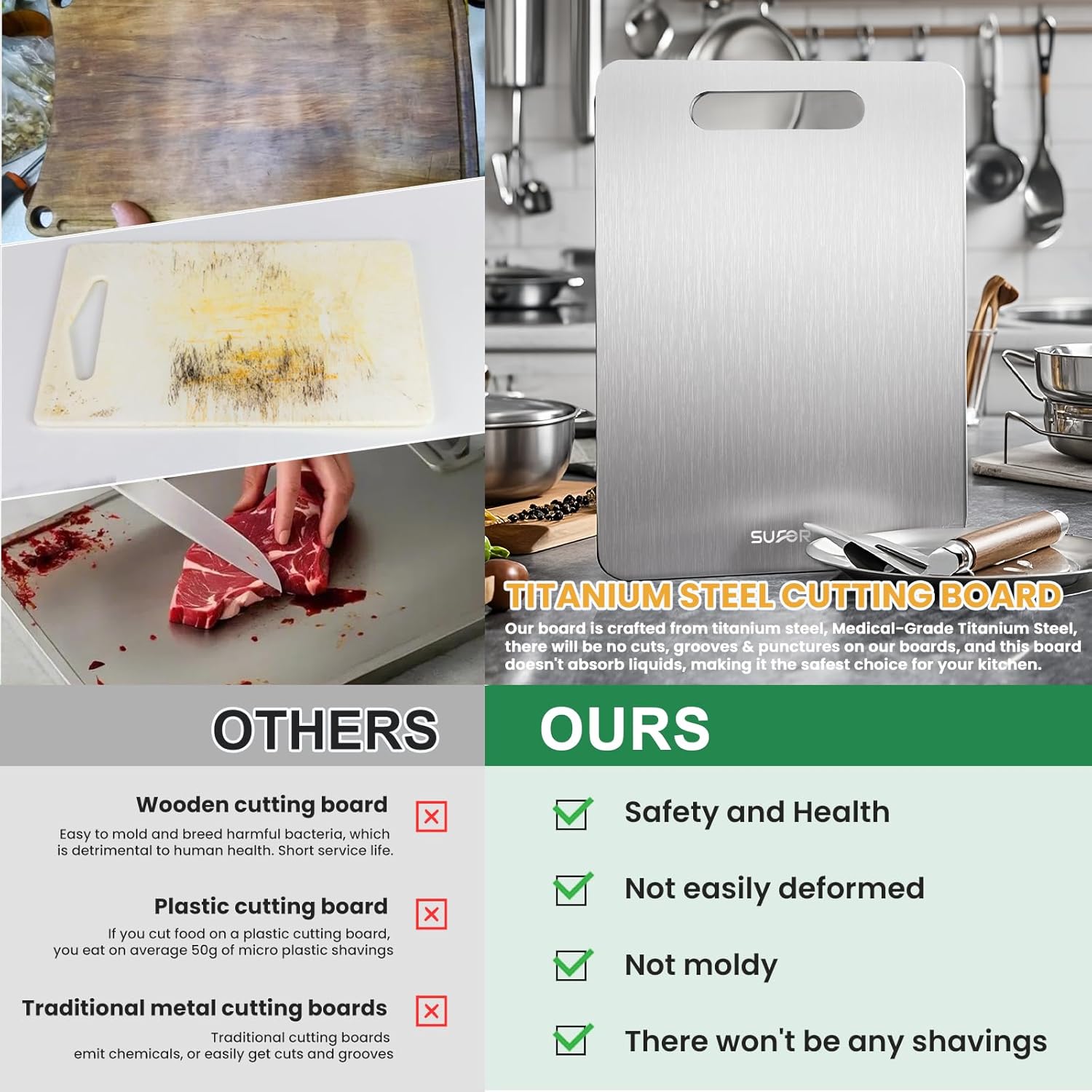 - Exquisite Gift Packaging: SUFOR New Titanium Cutting Board are packed with exquisite box, will be ideal gift for festival or special event, such as Mother's Day, Birthday, Anniversary, Thanksgiving, Christmas