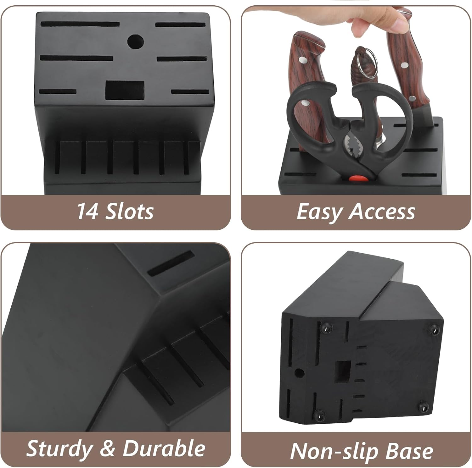 Wood Kitchen Knife Block, Universal Kitchen Knife Holder Kitchen Knife Storage Rack 14 Slots Knife Holder (Black)