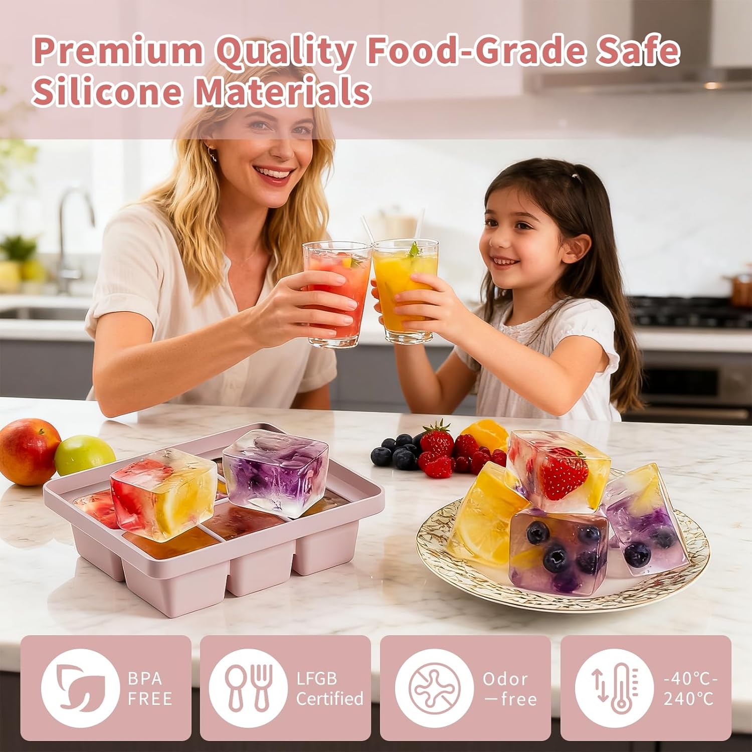- BPA-Free & Odorless Material: Crafted from 100% food-grade, BPA-free silicone, our silicone ice cube tray is completely safe for your family's health. It is rigorously tested to be odorless and tasteless, ensuring your ice and frozen treats always taste pure and fresh, with no plastic aftertaste or no floater.