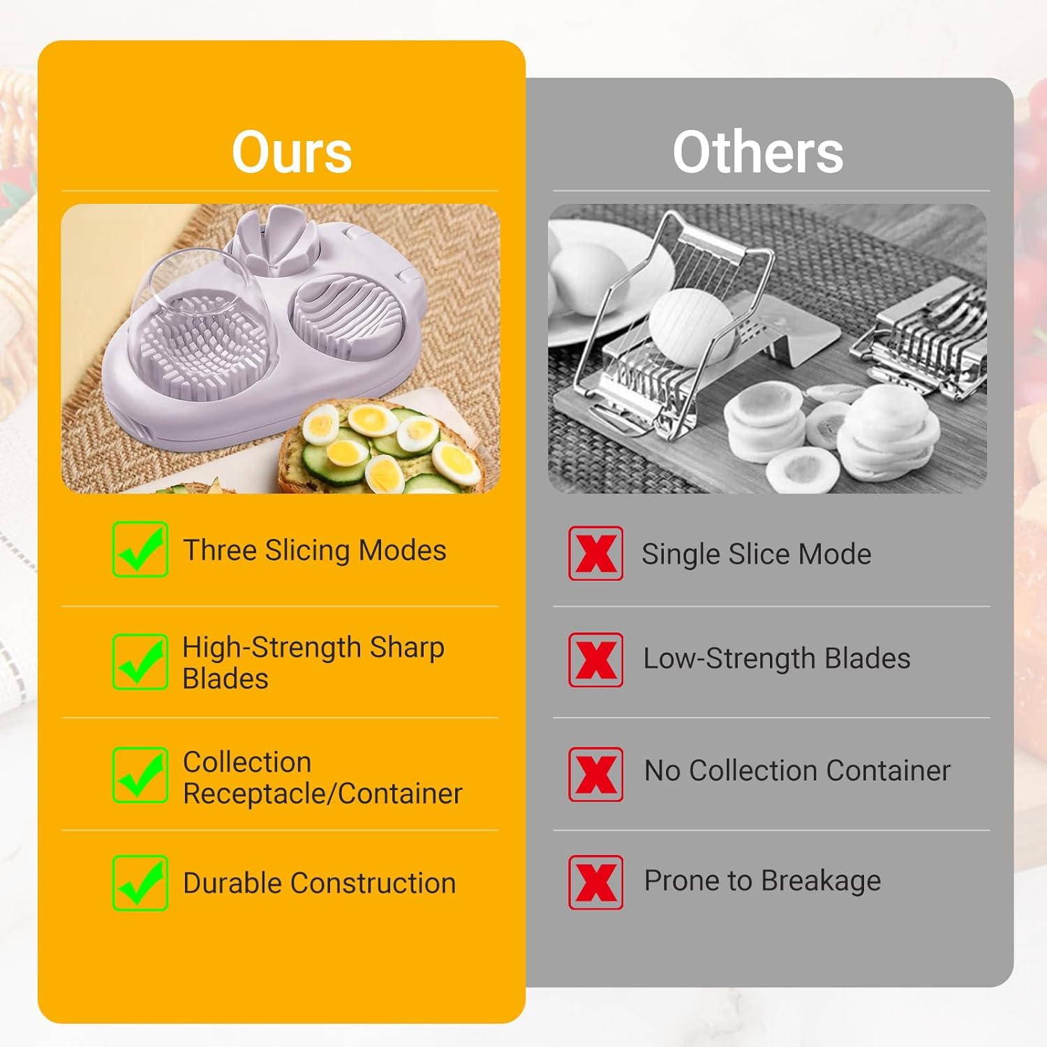 - 【VERSATILE AND EASY TO USE】 The Egg Slicer Is Ideal For Cutting Hard Boiled Eggs Quickly And Neatly, With Three Slice Modes—Dice, Wedge, And Horizontal. Grape Cutter Features A User-Friendly Design That Allows You To Effortlessly Slice Fruits Into Four Small Pieces With Just One Hand, Ensuring A Smooth And Safe Cutting Experience For Anyone